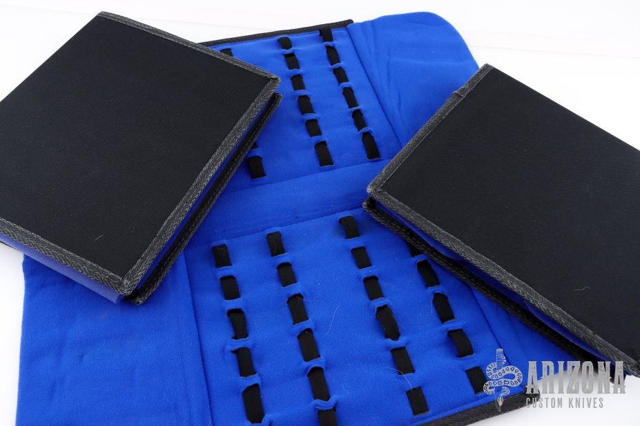 Nylon CaseXX knife case, has three binders that hold 24 knives each. 9.25"x10.5". The overall case is 11"x10".