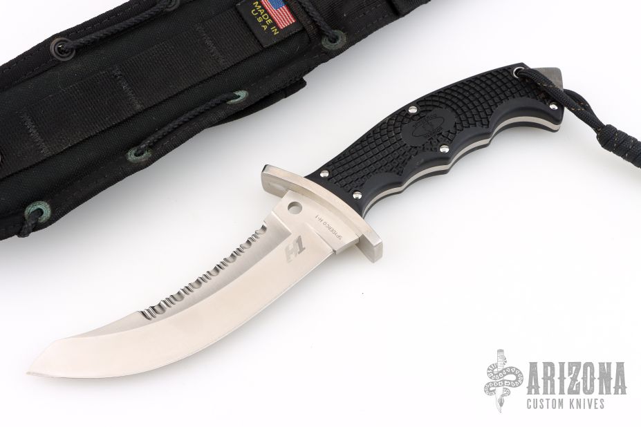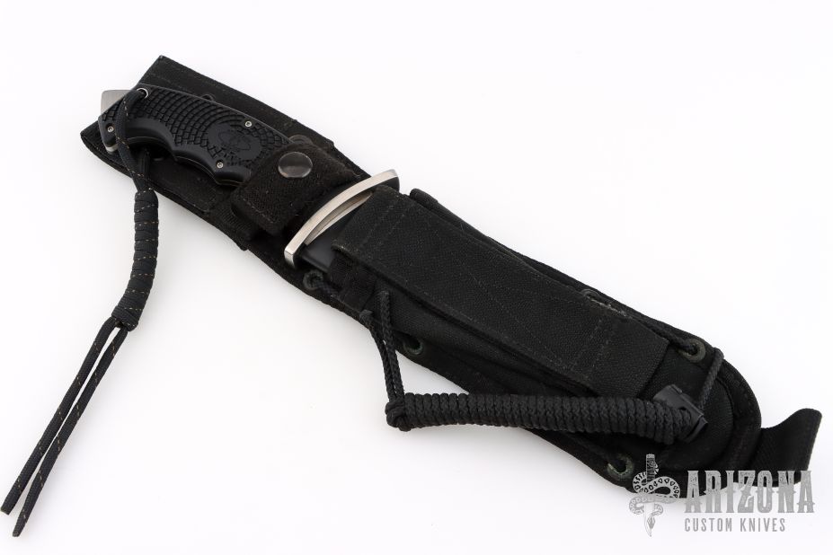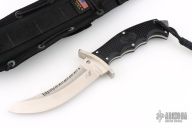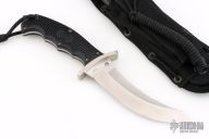 The Warrior fixed blade is one of the world's most intriguing combat knives. Based largely on the groundbreaking research of close-combat icon Michael Echanis, the original Warrior was a radical design intended primarily for use with reverse-grip tactics inspired by the Korean martial art of HwaRangDo. Produced in limited quantities by the late Al Mar and later resurrected by the martial artist Bob Taylor and Echanis contemporary Randy Wanner, it is one of the most coveted combat knives ever made. The Spyderco Warrior faithfully retains all the salient features of the original, while adding a number of performance enhancements. Its revitalization happened at the request of our Israeli customer, Guy Rafaeli. Ground from rust-free austenitic H-1 steel, it possesses the same differential hardness properties of a clay-tempered Samurai sword, giving it extreme cutting power and shock resistance. Its full-tang construction and textured handle scales provide a superior grip and edge orientation, maximizing the knife's effectiveness when employed with its signature tactics. The sheath is a black ballistic nylon snap-closed sheath with Molle-vest attachment capability.