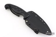 This Temperance fixed blade by Spyderco features a satin finished drop point blade with notched thumbrest, .156" blade stock and 1.456" blade depth, hidden tang construction. The handle is black plastic. Comes with original kydex sheath and papers. There are a couple light scratches and scuffs, excellent condition otherwise.