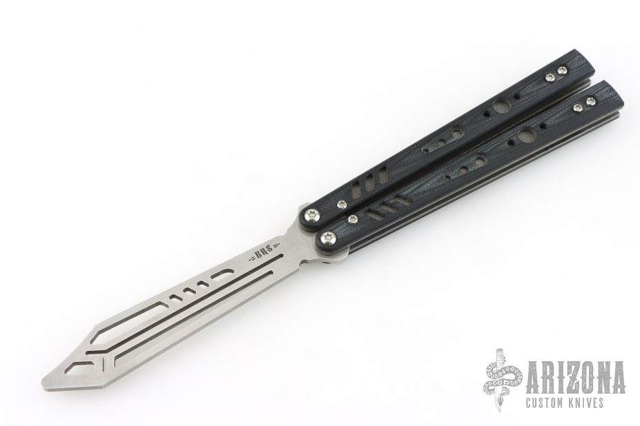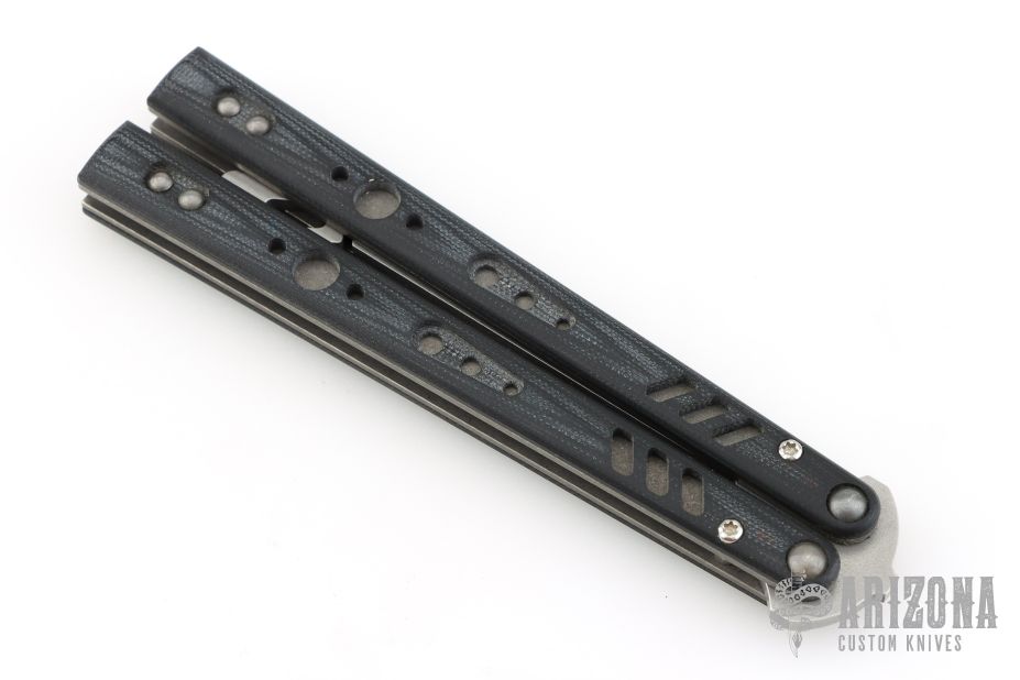 This Replicant Balisong by Blade Runner Systems features a stonewashed trainer blade. The handle is comprised of tumble finished machined titanium liners and G10 covers. Comes with original zippered case and papers. Excellent condition.