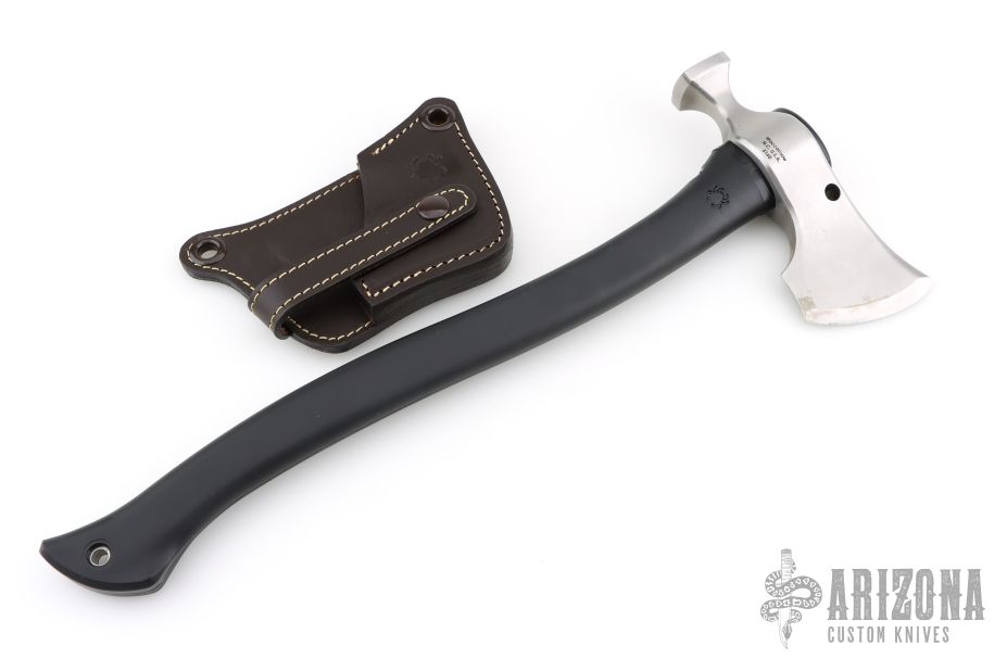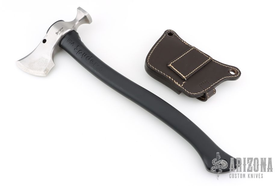 The Spyderco Genzow HatchetHawk was designed by Martin Genzow, who put his extensive axe, hatchet, and tomahawk knowledge into this model. It offers a modern interpretation of the utility tomahawk with a versatile design. The multi-functional head was drop forged from 5160 tool steel for unstoppable strength and durability. It utilizes the best attributes of the classic Francisca axe with a bearded head and a hammer poll for added utility. Item comes complete with a thick leather sheath for belt or over the shoulder carry.