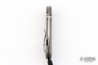 This Large Sebenza 21 is the Wilson Combat edition by Chris Reeve Knives. It features a bead blasted and milled titanium frame and clip with the Wilson Combat logo on clip. Tumble finish S35VN blade with dual thumbstuds and notched thumbrest. Comes with original box and papers dated November 8, 2012. Excellent condition.