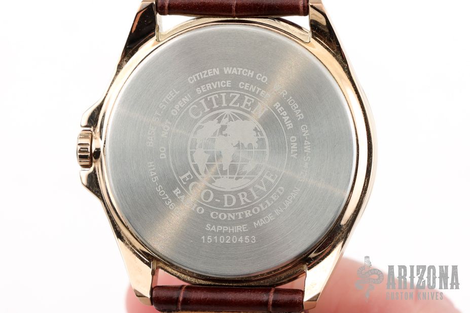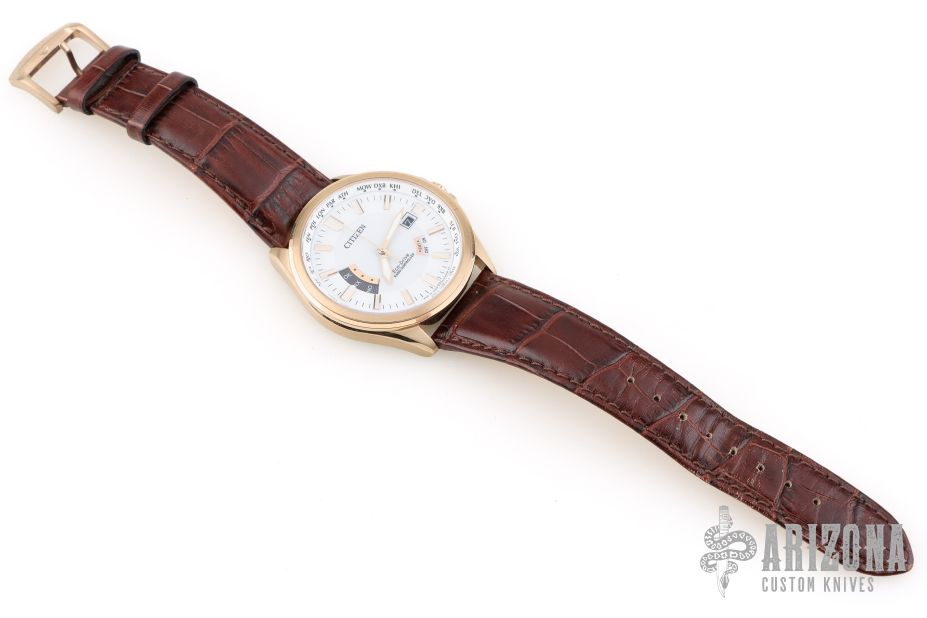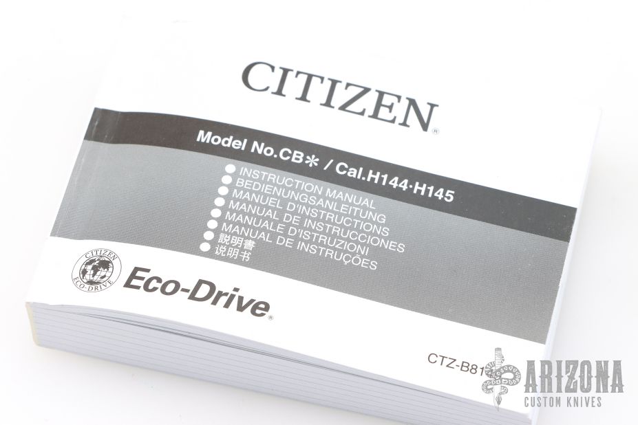 Comes with the attached leather band, and the Citizen instruction manual. Has a couple light scuffs, excellent condition otherwise.