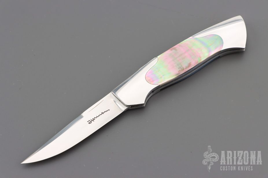 Tim Herman is a Kansas knifemaker who sold his first knife in 1978. He specializes in investment-grade folding knives with ATS 34 steel and his own engraving/carving.