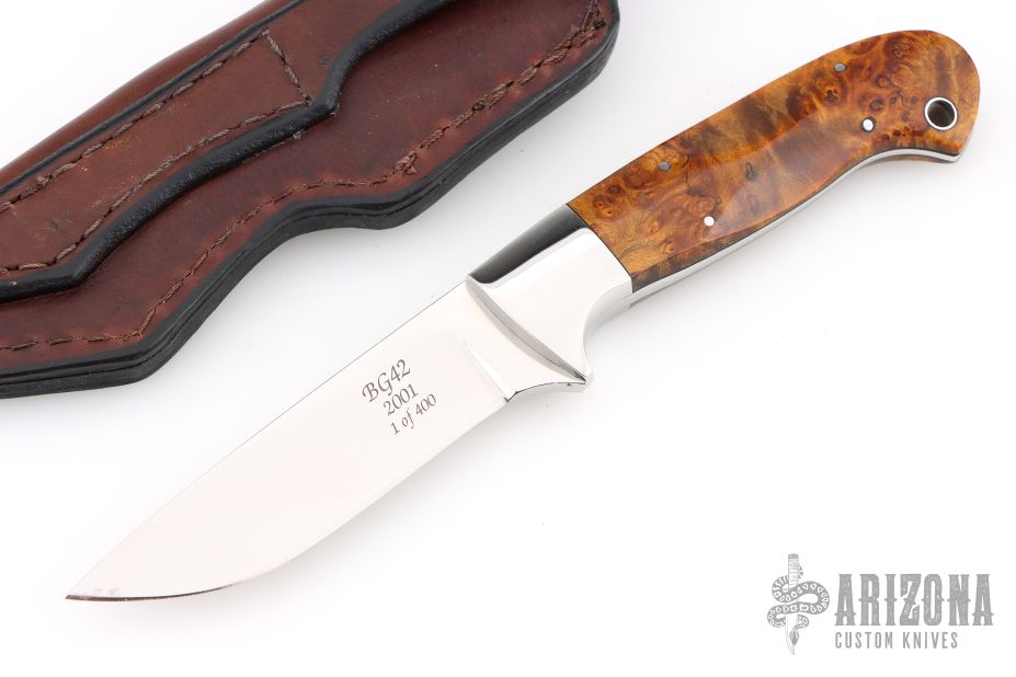 D'Alton Holder was born in Heald, Texas in 1940, was raised in Amarillo and graduated from West Texas State University with degrees in Fine Arts and English Literature. He retired early after 25 years with Diamond Shamrock Corp to become a full time knifemaker in 1988. He began making knives in 1968, joined the Knifemakers Guild in 1973 and was elected to the board in 1976, secretary/treasurer in 1978, President 1982, he served as Vice President 1984. Re-elected to board in 1988 and was elected President again in 1996. Received the Red Watson award in 1982. Named to the NSSF Hall of Fame in 1983. D'Alton is an avid horseman, hunter and fisherman. He prefers to work with natural handle materials and ATS-34. D'Alton has taught over 75 knifemakers, including people like Jim Hardenbrook and Bill Cheatham. Many of his knives are engraved by his wife, Pat Holder. Inducted into the Blade Magazine Cutlery Hall of Fame in 2003. D'Alton passed away in 2022.