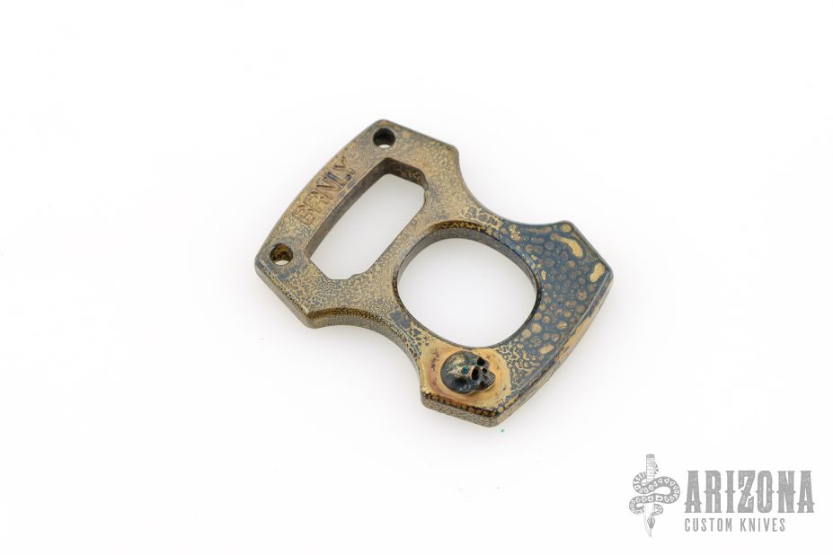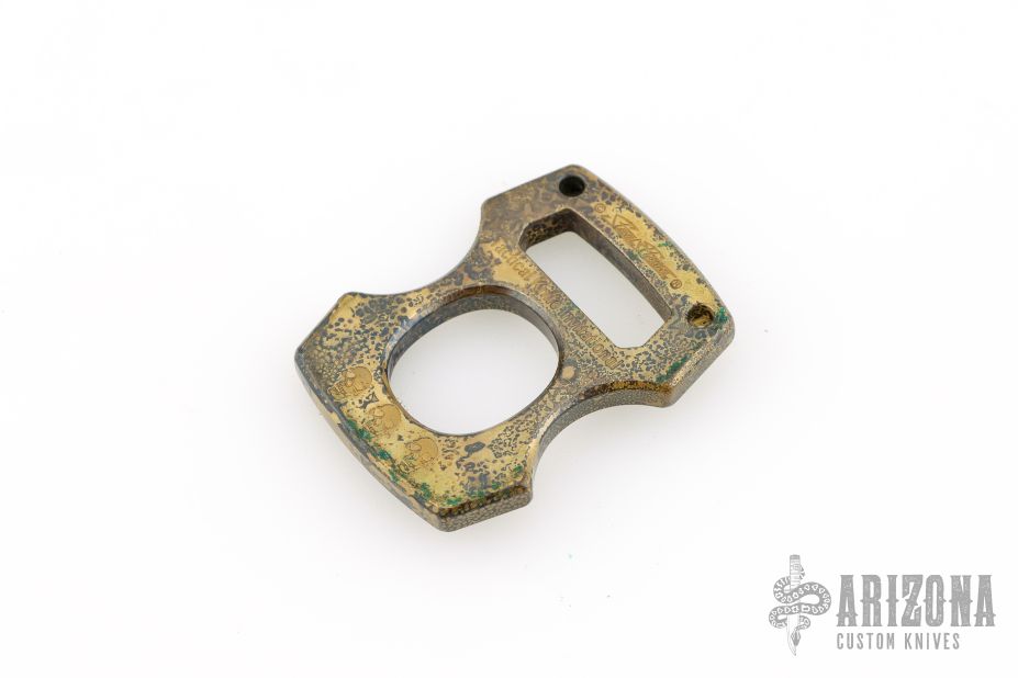 This boxed set from the 2017 Tactical Knife Invitational includes custom Hellhound ground Ultratech by Sean and Anthony Marfione, .25" Thickness "Darkness" Cypop with Steel Flame skull and Greg Stevens Design leather cypop coozie. Pocket clip and leather coozie are marked TKI. Cypop has "Steel Flame", "Tactical Knife Invitational" and the three "TKI Skulls" engraved into the "B" side of the Cypop. Also included is a Blackside Customs modular belt buckle with disassembly tool. All items are serialized with the number 008.