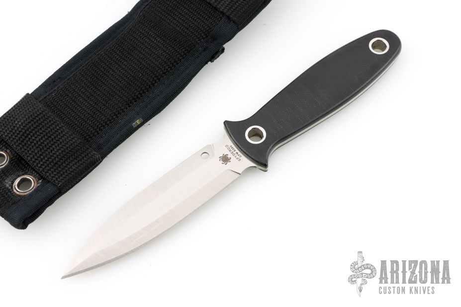 The Nightstick from Spyderco is a modern take on the classic boot knife. It boasts a full-tang CPM-S30V steel blade. The handle is G-10 for a solid grip and durability. This knife is made more legal and useful by having only one edge of the blade sharpened. The knife is topped off with Spyderco's token hole and a Boltaron sheath with a G-Clip mount. The Nightstick was designed by custom knife maker Gayle Bradley. Comes with a black nylon sheath. Discontinued. Has a couple light scratches, otherwise excellent condition.