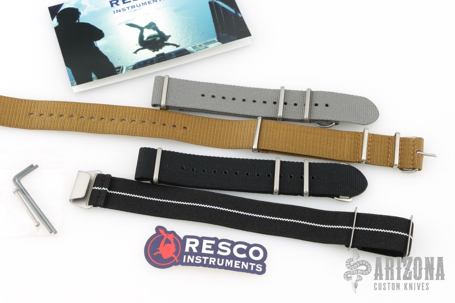 Comes with three NATO Nylon straps, a Resco strap, and the strap it currently wears.