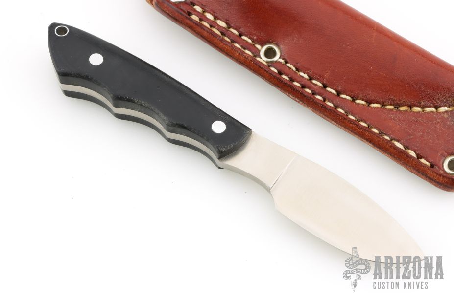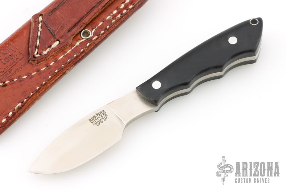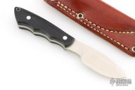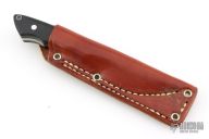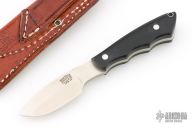 This Mini Canadian by Bark River features a satin finished blade, .154" blade stock and .888" blade depth, full tang construction. The handle has black linen micarta scales with a lanyard tube. Comes with a brown leather sheath. Excellent condition.