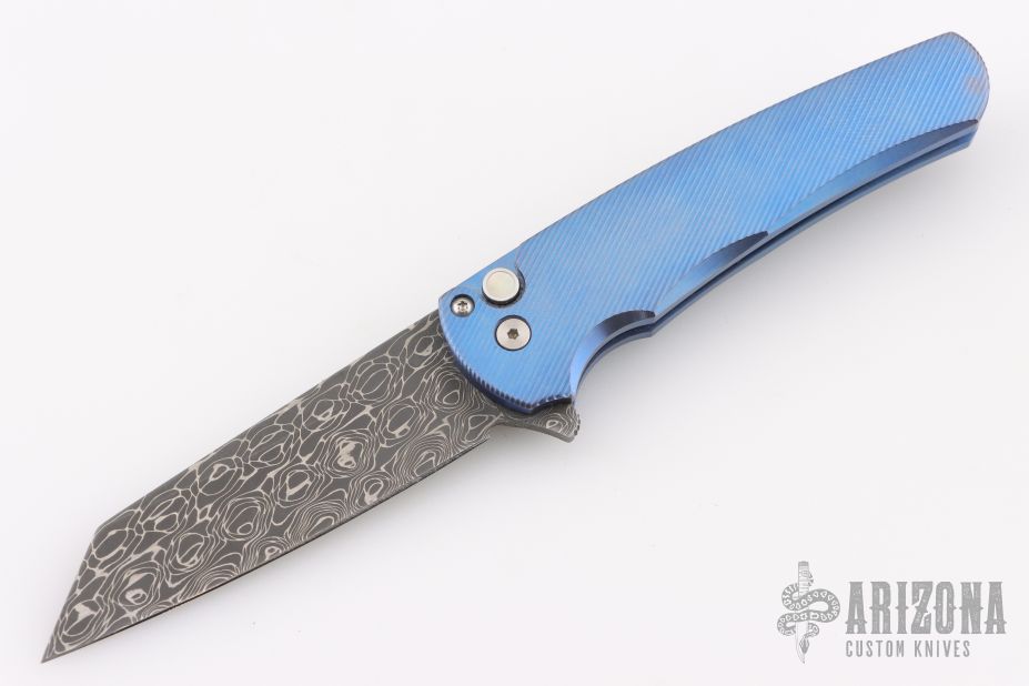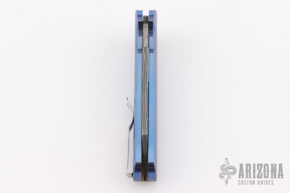 This Malibu model has a blue anodized titanium handle and a sheepsfoot blade.