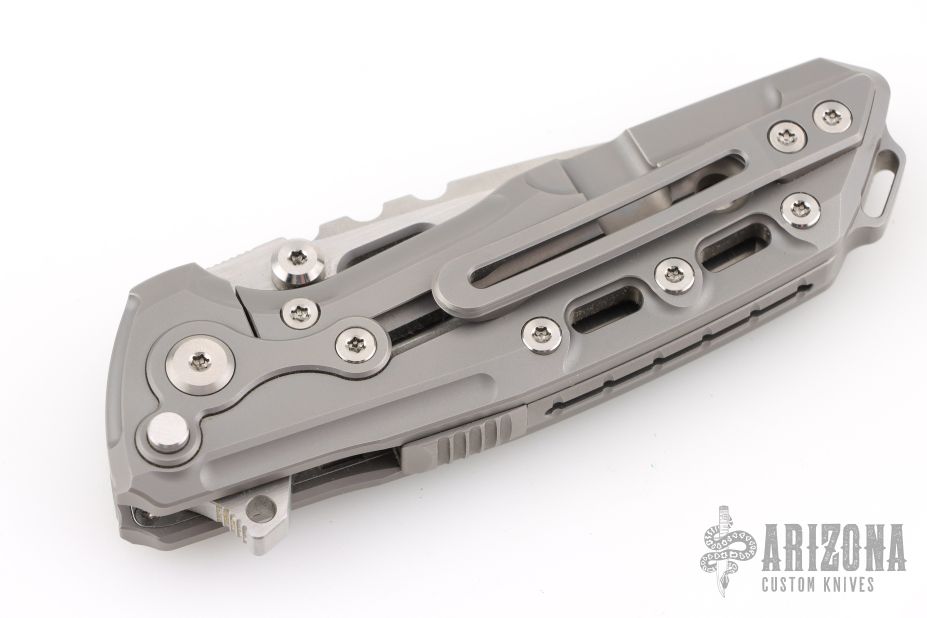 - Milled titanium pocket clip set for tip-up, right-side carry.