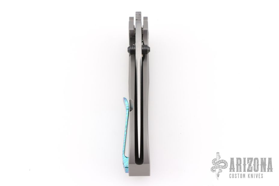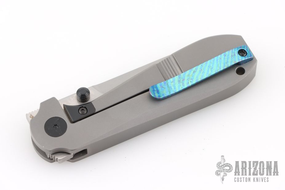 Has an anodized timascus clip. Has some scuffs and scratches, excellent condition otherwise.