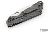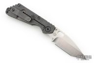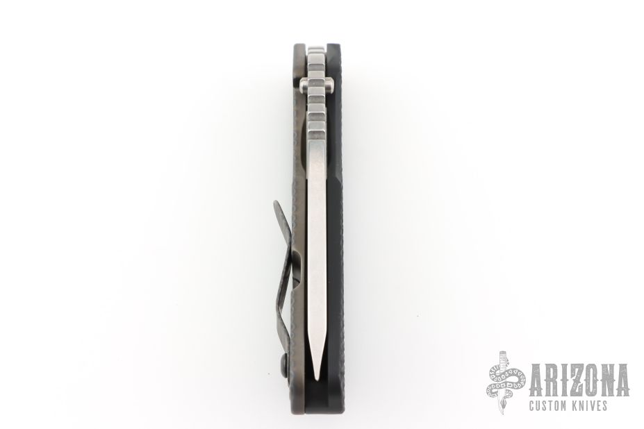 This SNG framelock folder by Mick Strider features a stonewashed tanto blade and a dimple pattern G-10 and flamed titanium frame and tip up titanium clip. Includes a "Lock Bar Stabilizer" for maximum reverse lock retention. Nice detent, lockup and blade seating. Has a few light scuffs, otherwise excellent condition.