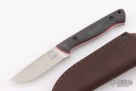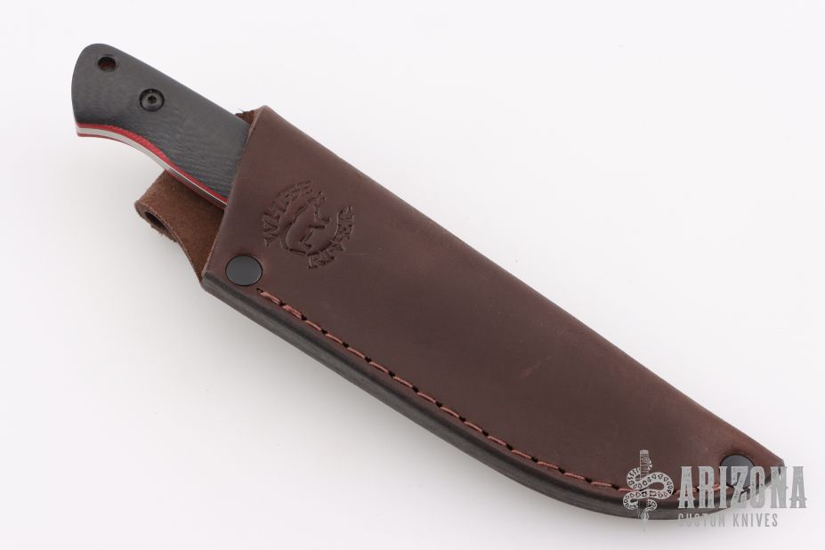 Jason’s classic Utility Hunter is made to his specifications and features an ergonomic handle paired with a multi-purpose blade shape, top tier materials, and White River’s fit and finish. Has carbon fiber scales with red G-10 liners. Includes a leather sheath