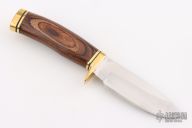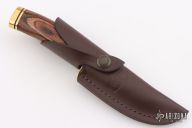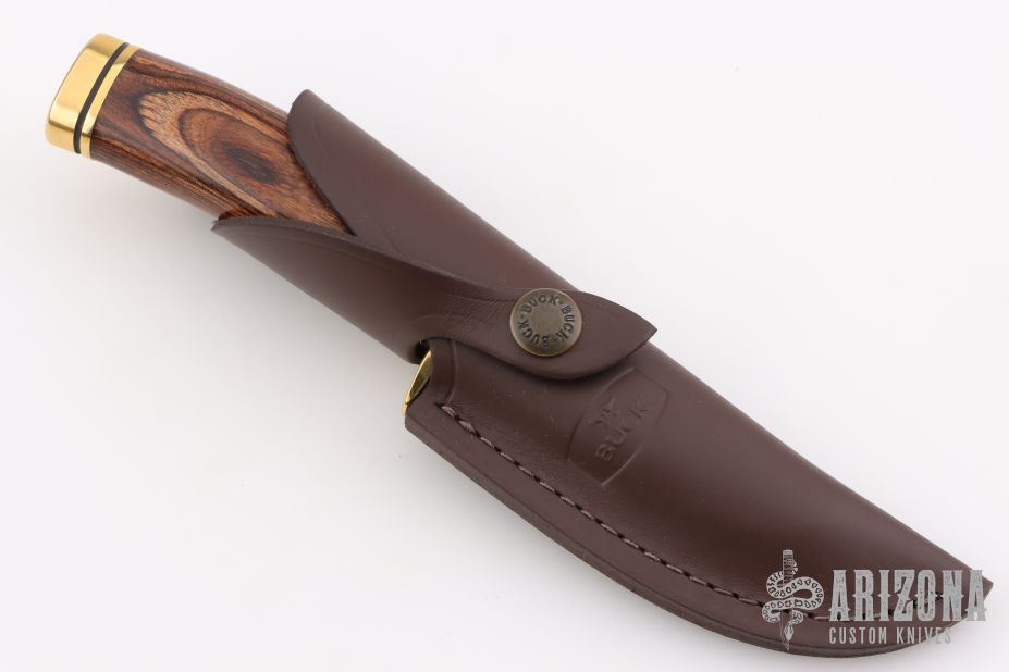 The Vanguard is a classic fixed blade featuring a Heritage Walnut Dymondwood handle with a brass guard and pommel. It's designed for for big game hunters, but with its versatile drop point blade you'll find it an excellent general utility field knife as well. The blade is Buck's standard 420HC steel, Bos heat treated to a Rockwell hardness of 58 RC. Buck's Vanguard is supplied with a leather sheath.