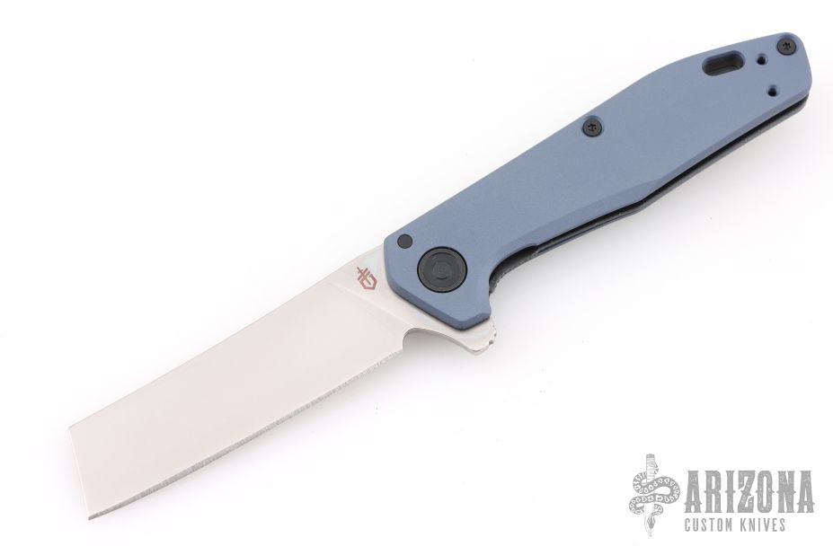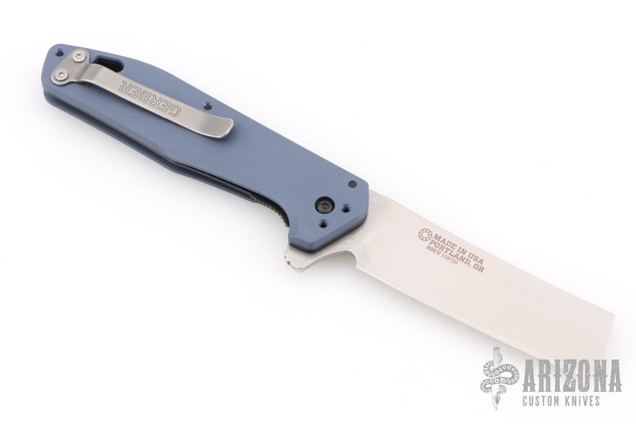 This Gerber Fastball features a stonewashed CPM-20CV cleaver blade paired with an urban blue anodized aluminum handle.