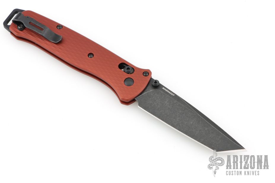 The Bailout® family of tactical folders has long been revered for its combination of no-holds-barred strength and slim, ultralight build, making it an impressive tool on the trail or on the job. The new 537BK-07 Bailout® introduces CPM-MagnaCut stainless super steel with enhanced corrosion-resistance in a DLC Battlewash finish. Together with lightweight, diamond-textured Burnt Copper anodized aluminum handle scales and black oxide hardware, this ruggedized ultralight is ready for the next adventure.