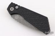 This Pro-Strider PT+ by Pro-Tech and Strider Knives features an acid etch finished blade with notched thumbrest. The handle has a milled black aluminum frame with bead blasted hardware and black stainless steel tip up clip. Comes with original packaging. Excellent condition.