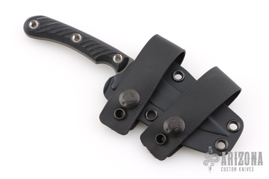 The sparrow is a compact bird and trout style fixed blade knife that excels in a concealed carry or everyday carry (EDC) capacity. You can use the Sparrow to cut an apple in the park without anyone being concerned that you have a dangerous weapon in your hand. It blends in well in both urban and rural settings and is a great companion for any type of adventure. The classic drop point blade is made from Nitro V stainless steel and has a Tungsten Cerakote finish for corrosion and glare resistance. The beveled and contoured G10 grips feature diagonal texturing for a not too aggressive, but still secure grip. The Sparrow comes with a molded kydex scabbard with two MAD straps that allow for scout-style carry (horizontal) and inside the waistband (IWB) vertical carry. It is also MOLLE compatible and can be set up to attach to PALS webbing on any pack, plate carrier, or similarly equipped gear.