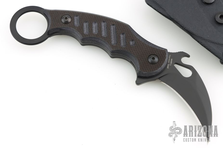 Textured G10 handle scales have relief for hand comfort, but machined grooves and the signature karambit tail ring mean you won't be slipping anytime soon. You can also thank the jimped thumb ramp and finger guard for added control.