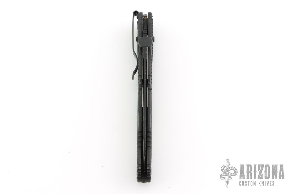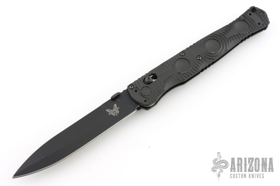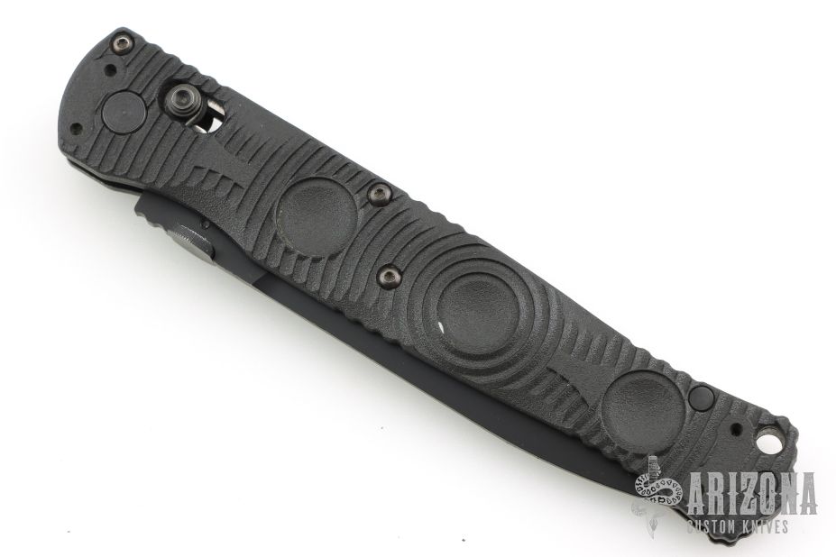 This SOCP 4.5 by Benchmade features a black blade with false top edge and a thumbdisc. The handle has black FRN scales, black stainless steel liners and clip, 4-way reversible. Comes with original box, drawstring pouch and papers. Has some light scuffs and scratches, great overall condition otherwise.