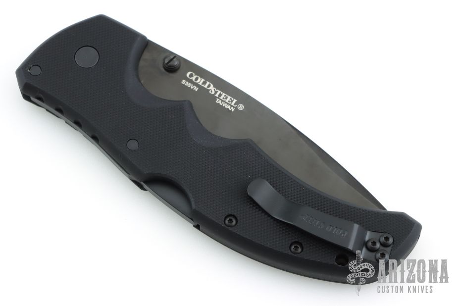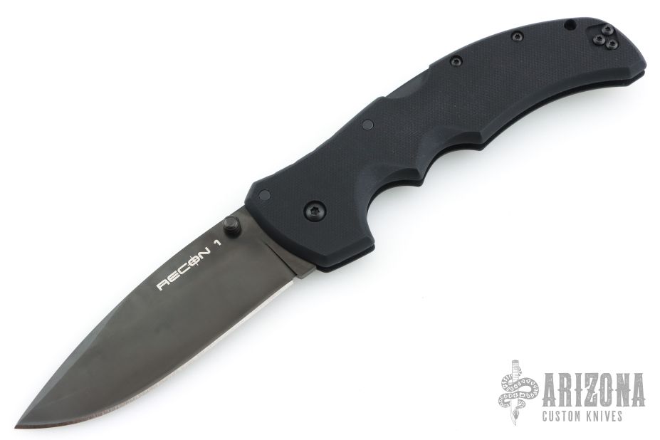 This Recon 1 folder form Cold Steel features a black drop point blade with dual thumb studs. The handle has black G-10 scales with a black stainless steel clip, left or right-handed carry. Excellent condition.