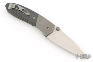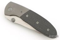 This Lightfoot LCC M/A by Microtech Knives is a Greg Lightfoot design, it has a stonewashed blade with dual thumbstuds and a notched thumbrest. The handle has bead blasted titanium bolsters, carbon fiber scales, stainless steel liners and clip. Dated 08/2000, #1282. Has some scuffs and scratches, good condition otherwise.