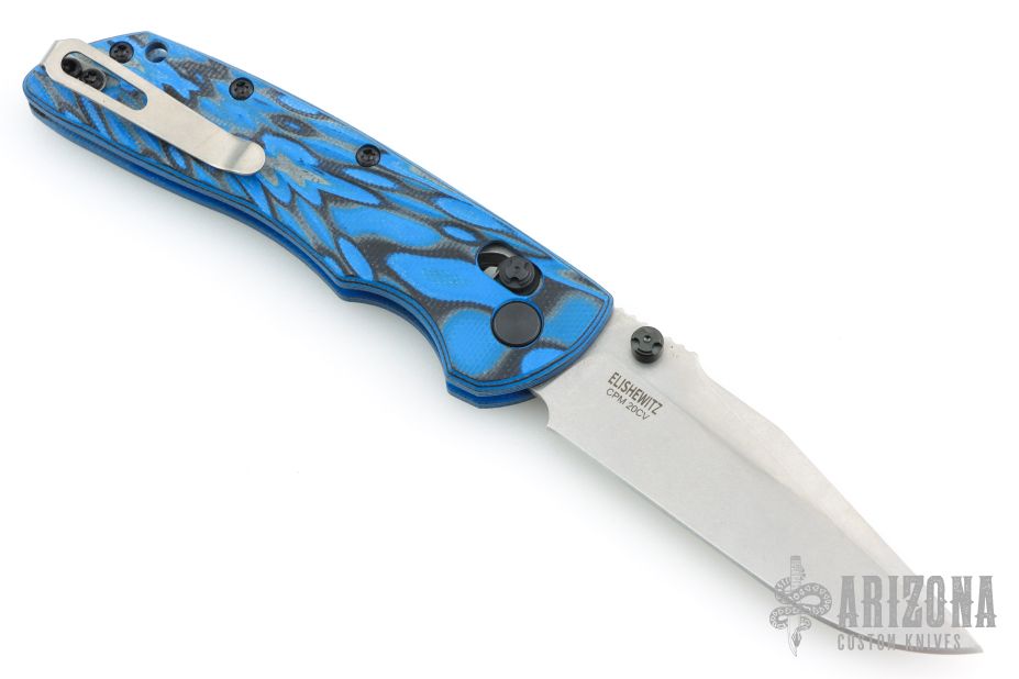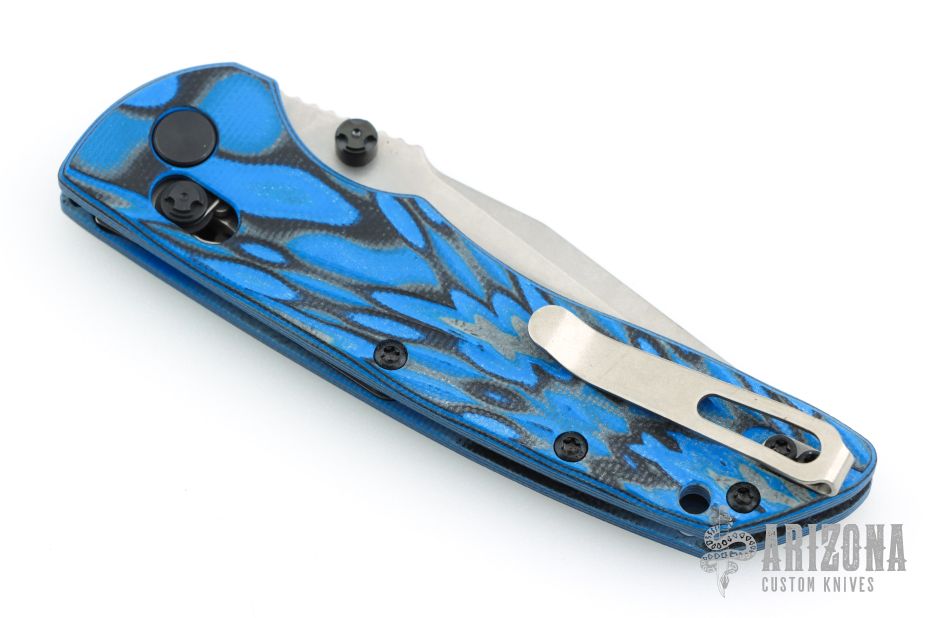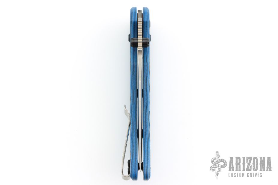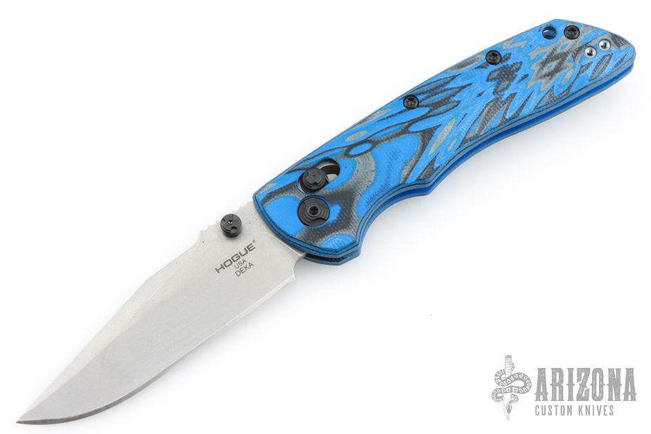 This Deka folder features blue Lava G-mascus G-10 handles. The ambidextrous blade is easy to deploy thanks to the included thumbstuds. The knife comes with the ABLE-Lock system that secures the knife while open or closed. This version has the modified Wharnclife blade with a stonewashed finish. Stainless steel tip up reversible pocket clip. Excellent Condition.