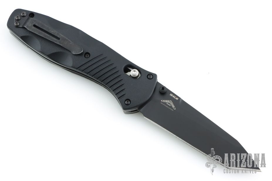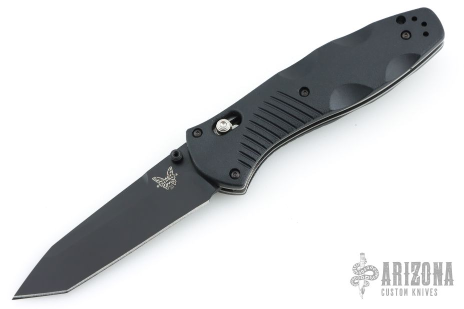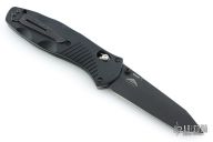 This 583 Barrage from Benchmade features a black tanto blade with swedge and dual thumbstuds. The handle is comprised black FRN scales over stainless steel liners and FRN backspacer. This knife also features the AXIS lock mechanisim and sliding safety on spine. Excellent condition.