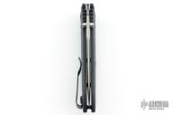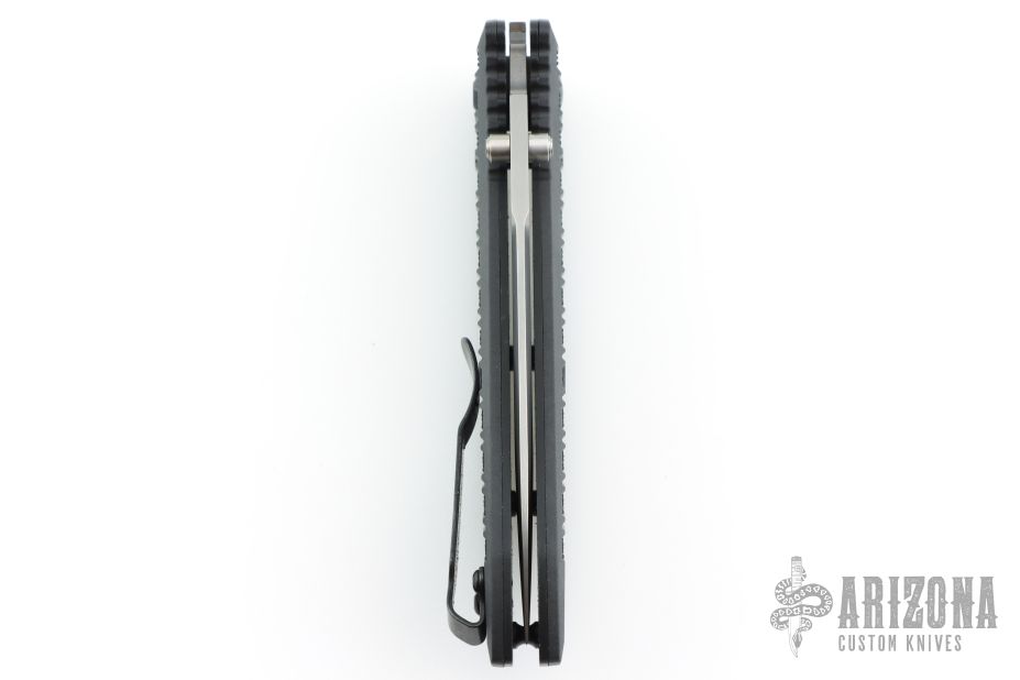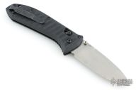 This 570 Presidio II by Benchmade features a bead blasted drop point blade with swedge and dual thumb studs. The handle is comprised of black FRN over black steel liners and barrel spacers. Axis lock mechanism. Black coated tip up clip is reversible for left or right hand carry. Excellent condition.