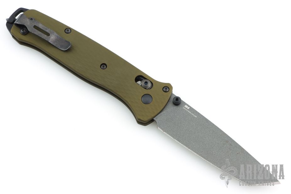 Benchmade is changing the tactical game once again, with the lightweight and nimble 537 Bailout Series. This slim, pocket friendly folder weighs in at just over 2 ounces, with a green aluminum handle and a gray Cerakote finished tanto blade. Tough CPM-M4 steel provides a tough cutting edge with excellent retention.
