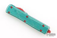 This UTX-70 OTF automatic by Microtech features an Apocalyptic finished blade with a standard edge. The handle has a distressed Bounty Hunter aluminum frame with stainless steel tip down clip. Dated 02/2023 and #652. Comes with original box and papers. Excellent condition.