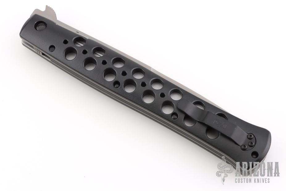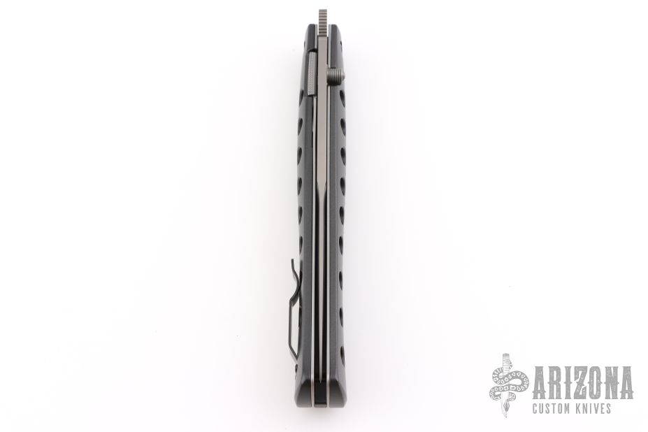 This Ti-Lite features a bead blasted blade with false top edge and single thumbstud. Black aluminum handle with stainless steel liners and tip up clip. Excellent Condition.