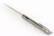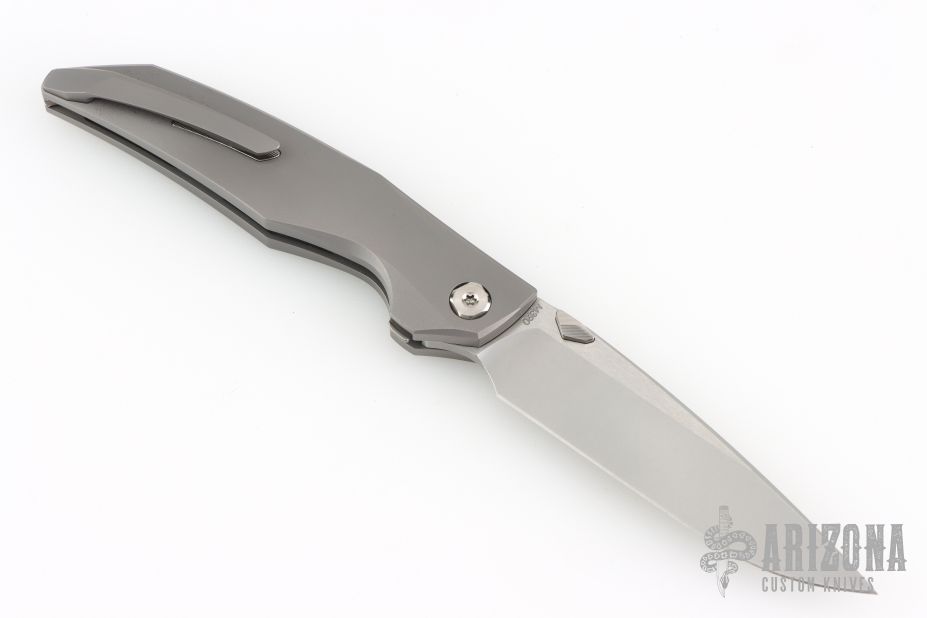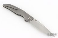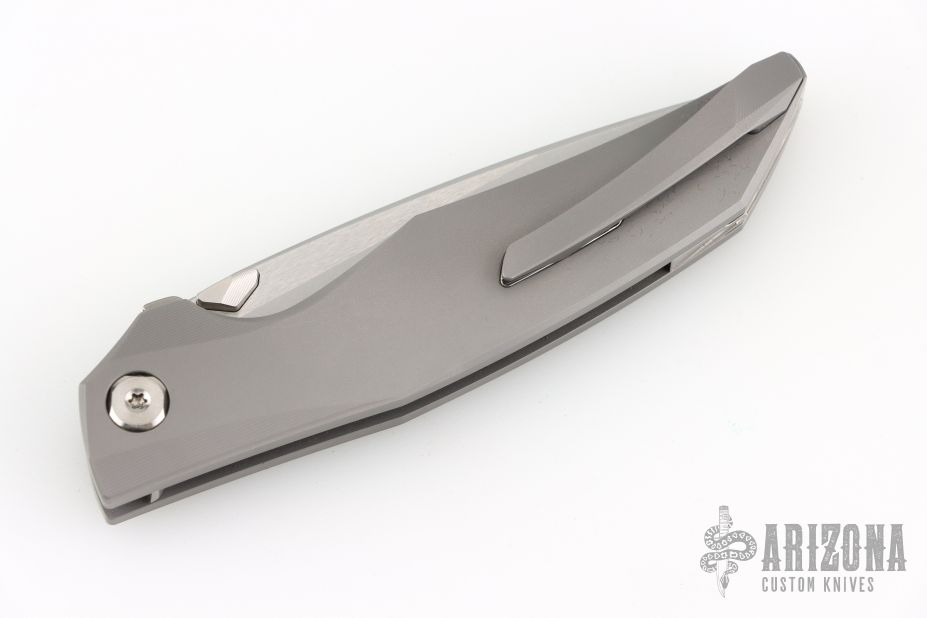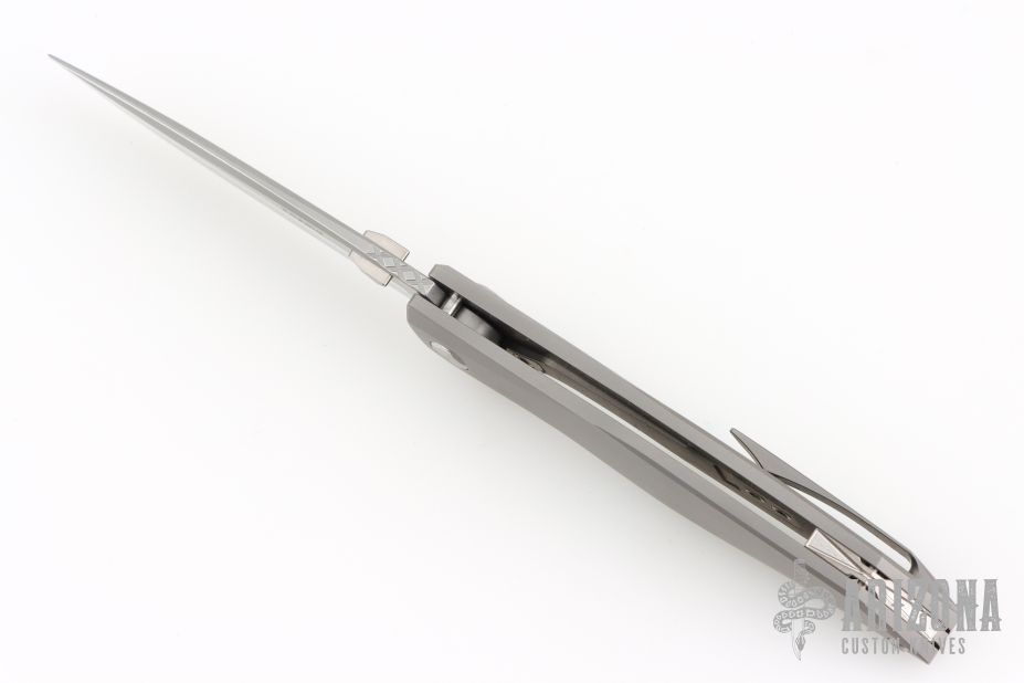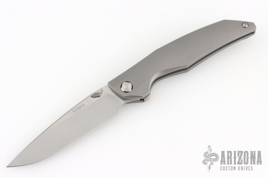 This Xenon by Koenig Knives features a two-tone burnished w/ PF blade with notched thumbrest and flipper. The handle has a smooth titanium frame with a titanium backspacer, pivot, and hardware. Titanium tip up clip with hidden screws. Comes with original box and card dated October 20, 2025. Excellent condition.
