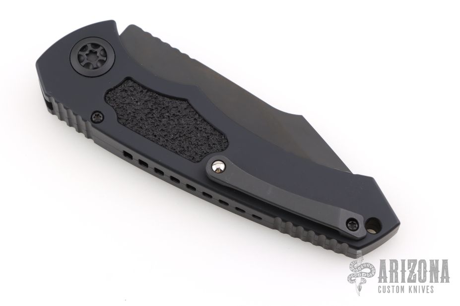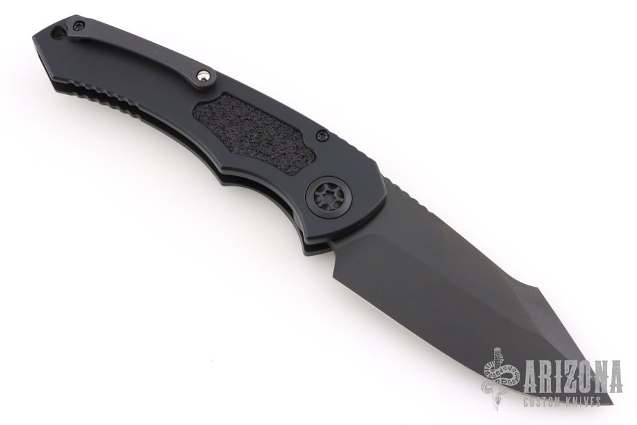 This Mini Pariah Auto by Heretic Knives features a black blade with notched thumbrest. The handle has a black frame with black steel tip up pocket clip and non-slip inlays.  Comes with original box and card.  S/N00781, 11/24. Has a couple light scuffs, Excellent condition.