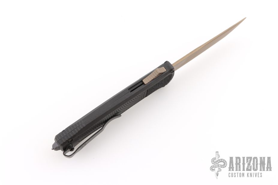 In a world where most out-the-front automatics are expensive and heavy, there is a demand for a lightweight and affordable OTF auto. Enter the 5370FE Shootout. This Black Class knife was designed with law enforcement and tactical personnel in mind. It is the perfect weak-hand backup for anyone concerned with gross-motor deployment under stress. The 5370FE Shootout handles are CF-Elite, a carbon fiber-filled nylon that increases rigidity and allows for reliable deployment. The molded CF-Elite has a detailed texture that could not be milled into aluminum, Flat Earth PVD coated CPM-CruWear blades, a Carbide glass breaker, and a reversible clip. Made in the USA and stocked full of features and premium materials, the 5370FE Shootout packs a punch.