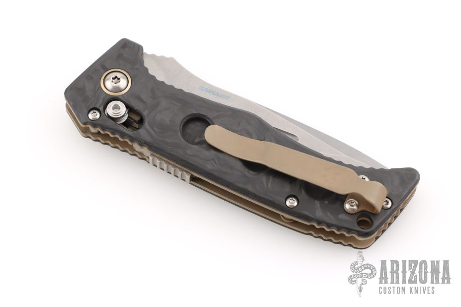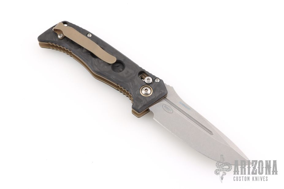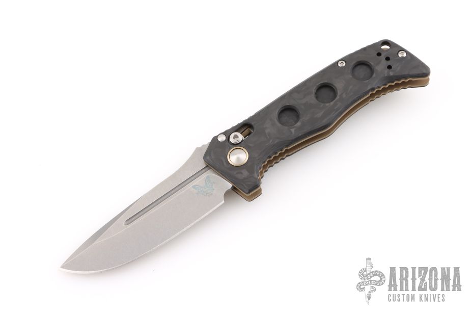 The automatic Mini Adamas, designed by Shane Sibert, is a stand-out Benchmade pocket knife built for EDC and tactical use. It features Benchmade's AXIS Auto mechanism, which automatically opens the blade by simply pulling the AXIS Lock crossbar as you would when closing the knife. It has a contoured, jimped handle that provides plenty of comfort and grip and a deep-carry pocket clip for secure pocket carry. Take on anything with this compact powerhouse automatic knife!