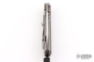 The idea behind the Sebenza has never wavered: to craft the best pocket knife in the world. Premium materials, paired with pristine finishes, and a bank-vault lock-up— all within an incredibly light, precision-made tool. That commitment continues with the new Sebenza 31 with a Ceramic Ball Interface. Like the very first Sebenza, it delivers the same warm “click” and heirloom quality produced from aerospace tolerances. The Sebenza 31 brings finer details to an already fine knife — and another steady, reliable step forward. This one has a stonewashed blade, and bead blasted titanium frame with Macassar Ebony inlays. Includes the original box, cloth, leather slip sheath, lube, papers, and COA dated April 17, 2004. Excellent condition.