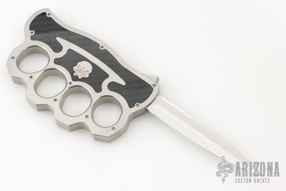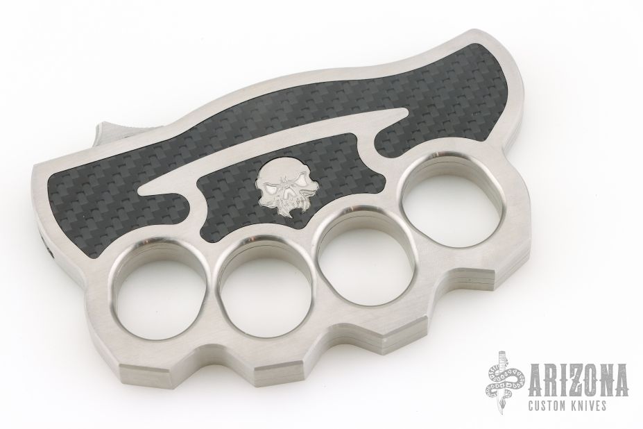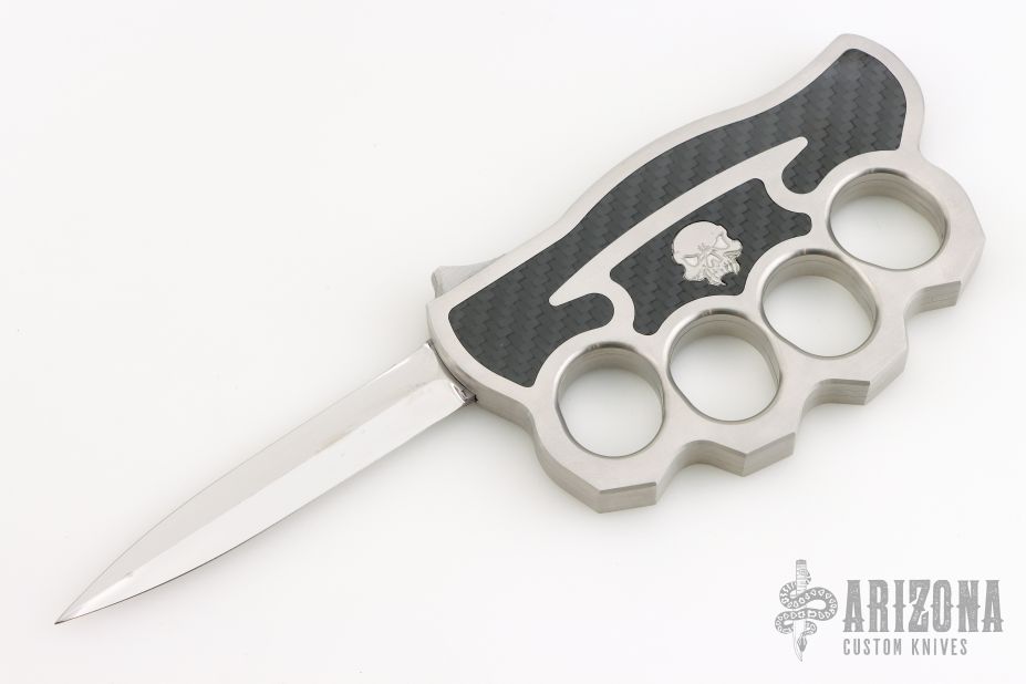 This Custom K-Razor by Burn Knives features a mirror polished double-edged blade. The handle has a 316 Stainless Steel knuckle frame with 3K carbon fiber inlays. Comes with a COA dated 5-9-25. Has a couple light scratches, otherwise excellent condition.