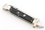 Angelo Campolin Sr. was born in 1923 in Maniago, Italy. He worked on perfecting his knife making skills before WWII and at this time made his first switchblades. After the war, in 1947 he started his company and made 30 stilettos with the marking “Angelo Campolin”. In the 1970’s Angelo’s son Gianni started to work in the company and they were specializing in folding hunting knives and also manual folding stilettos for the Robert Klaas company in Solingen Germany with their Kissing Cranes mark. In 2002 American switchblade collectors Dan Fuller, Brad West, and Tim Zinser were visiting Maniago and enjoying a few glasses of wine in a bar with Angelo Jr. and Gianni. The discussion was about a new name for some knife projects they wanted to pursue. It was Brad West that suggested the tang stamp should be AGA, for Angelo, Gianni, Angelo, thus representing three generations in the knife making business. The Campolins liked it and it stuck. In the beginning it was just a few items, but grew to the point where now there are 12 models and different scale options. The goal has been to offer quality switchblades using the old methods and traditions. Being a collector himself, Angelo Jr. knows what others like. The company headquarters has moved to Austria with production still in the original Maniago shop, as well as the others in Maniago that produce the knives for A.G.A. Campolin.