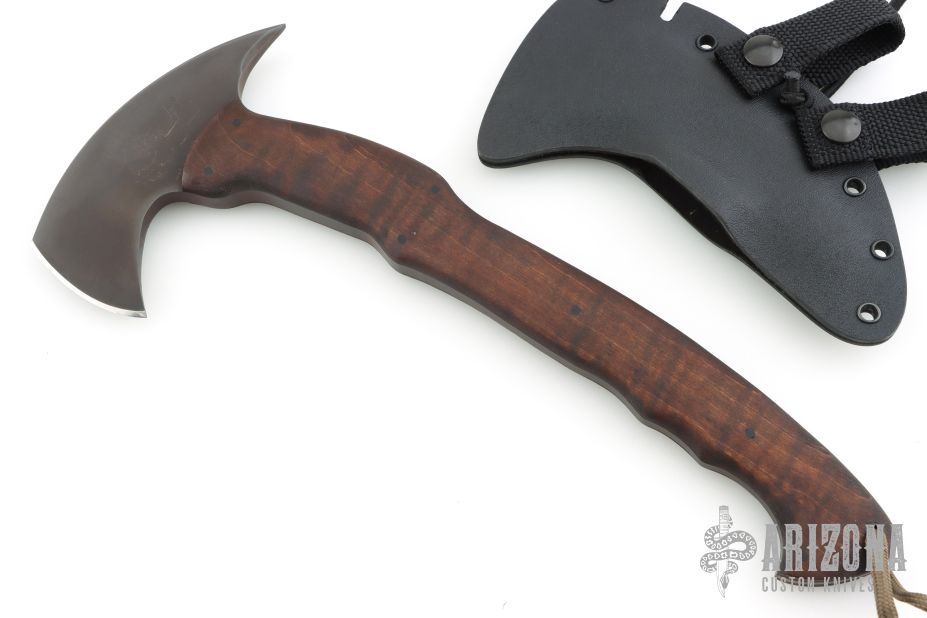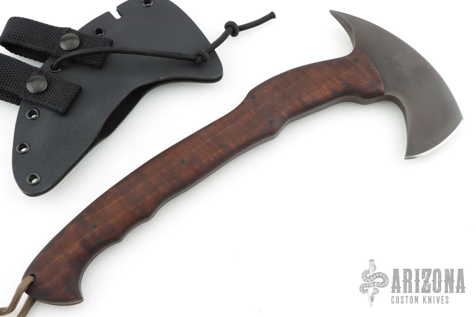 The WK RnD Axe Series is a collaborative design between Master Bladesmith Daniel Winkler and skilled Sayoc Kali martial arts trainer Rafael Kayanan. The full-size model is the most tested and highly developed axe produced by Winkler Knives, and has been proven in combat applications by a Special Operations Force Team. It is a favorite among operators and servicemen who choose their own equipment. The handle design provides a standard grip position, as well as a secondary close quarter grip that was developed to emulate the feel of a handgun grip.
