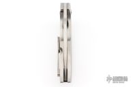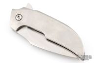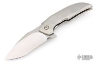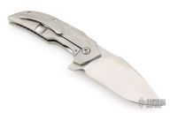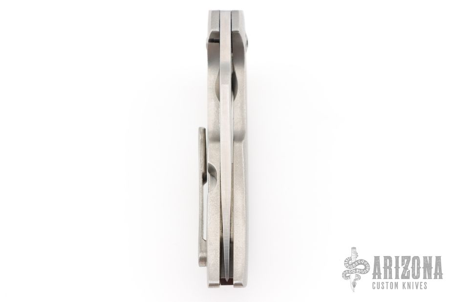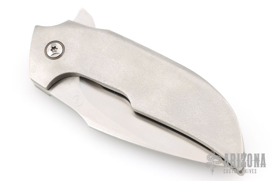 This Tashi Bharucha designed Immortal Pup flipper by BBC Knives features a satin finished clip point blade with thumbhole and flipper. The handle has an orange peel finished titanium frame with matching tip up clip and a bronze anodized orange peel finished titanium backspacer and a bronzed titanium pivot colar. Nice detent, lockup and blade seating. Knife flips effortlessly on IKBS. This knife is in excellent condition and shows no signs of use/carry. A gorgeous design from Mr. Bharucha that has been carefully executed by the Bass brothers! Comes with COA dated 4-23-15. Excellent condition.