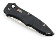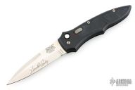 This Side Opening Automatic from Bat Cave Cutlery features a hand rub satin finished spear point blade with swedge. The handle is comprised of black anodized aluminium with non slip inserts. Sliding safety on handle. Blade was hand ground by Harold Corby. Excellent condition. Includes original box.