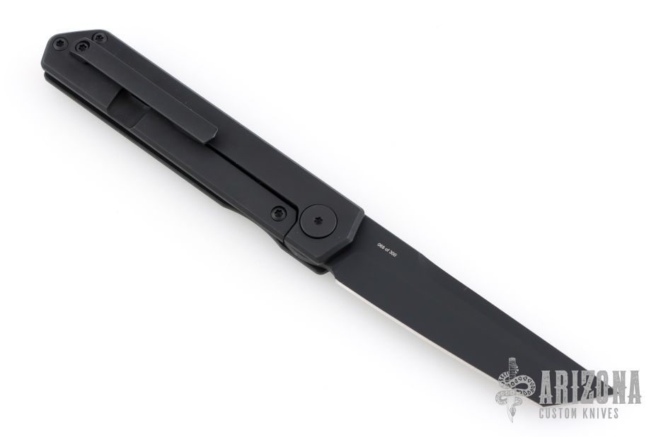 This Sam Eddleman AP Tanto Front Flipper is one of the most impressive kwaiken-style folding knives we've ever seen. It has the looks of a full-size design from the Far East but comes in at 7.25" overall and 4.25" closed for a knife you can easily conceal. The action is buttery smooth utilizing a pivot bearing system and the lockup is nice and tight. The heart of the knife is a 3.15" Bohler M390 stainless steel blade with hollow ground bevels for sharpness and a flat-ground tip for strength. It has a tactical black PVD finish and a conventional V-ground edge. The beautiful design is true to its Japanese heritage with a matching black PVD titanium handle inlaid with red G10 diamonds in a katana wrap pattern. We absolutely love this design and are sure you will too; it's a backup tactical folder that exudes style and personality. First production run individually numbered and limited to 300 pieces.