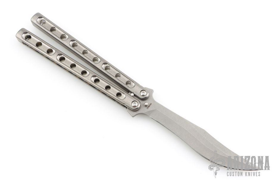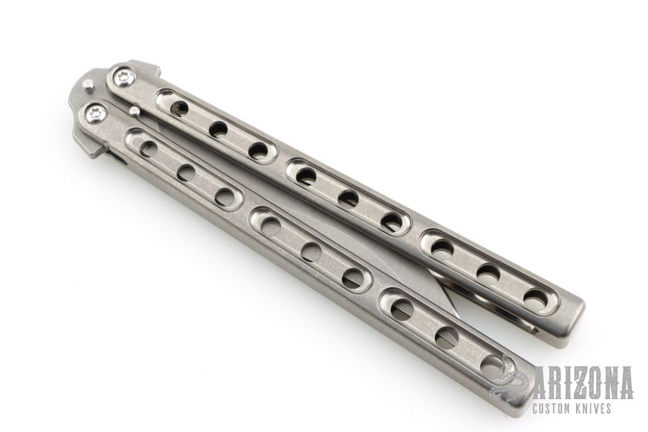 This Dolphin Balisong by Sam Eddleman features a stonewash finished blade with false top edge. The handles are stonewash finished channel construction titanium. Rides on bronze washers. Comes with zippered case and COA dated 1-22-26. New from maker.