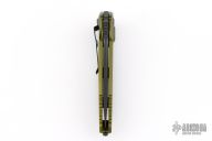 This Socom Elite Auto from Microtech has two toned drop point partially serrated blade with notched thumbrest. The handle has a green aluminum frame with non-slip rubber inserts and a tip down stainless steel clip. Dated 06/2025 and S/N 18869. Includes original box and paperwork. Excellent condition.