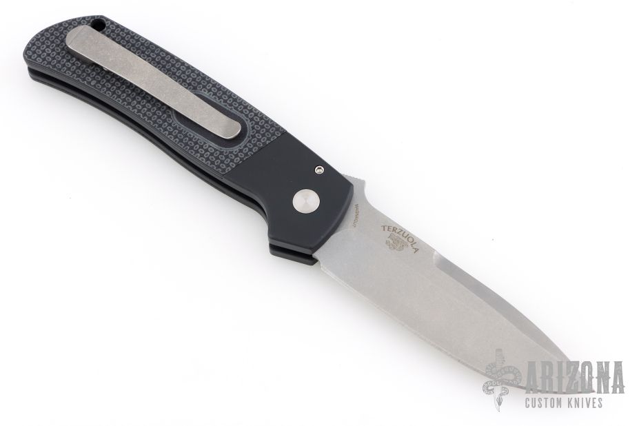 Bob Terzuola was born in Brooklyn, New York and attended New York University. Upon graduation in 1967 he went to Panama as a Peace Corps trainer and later became a jade carver and gemologist in the Motagua River Valley, Guatemala. In 1979, Terzuola began making knives and joined the Knifemakers' Guild in 1981 on an endorsement from Bob Loveless. Terzuola's first knives were fixed blade designs made for soldiers in Guatemala. Later that year moved to New Mexico and began making folding knives. Seeing a need for a knife that could be carried discreetly, he developed a model featuring black micarta for the scales and bead-blasted titanium bolsters. Innovations in desgin for which he coined the term "Tactical Knife". Bob attends many of the largest and well known custom knife shows across the world. Bob Terzuola Knives are known for their trademark design and high quality workmanship. Terzuola's most popular model is the ATCF, a folding knife design. This was his first tactical folding knife, although he also makes it with non-tactical materials. Other knife models that Bob Terzuola is popular for are the 3A, TT-1, Model 7, Eagle Rock 514, TTF3A, Model 26, Starmate, TTF3B, Pathfinder, Century Starfighter, Starmate, Battle Guard, TTF6, Model 18 Combat Master, WEE T, and Battle Mate, just to name a few. Bob Terzuola also designed a very popular knife for Spyderco, the SLIPIT. The SPLIT is made of the finest non-locking tactical folders on the market. Bob Terzuola has authored a book about the design of tactical knives named, 'The Tactical Folding Knife.' When you hear people say that Bob Terzuola literally wrote the book on tactical folding knives, he really did! Many custom tactical knifemakers have his book in their shop, and highly value his opinions and designs. Bob Terzuola has also authored articles about tactical knives and knifemaking for Blade, Soldier of Fortune and other publications.
