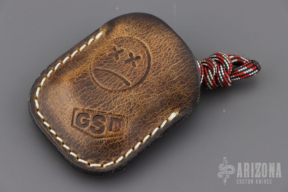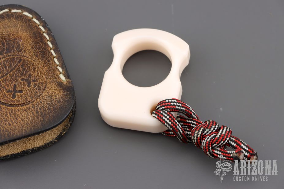 .450" thick corian SFK by Andy Frankart. .838" fingerhole diameter, 1.75" overall. Comes with leather slip pouch by GSD, excellent condition.
