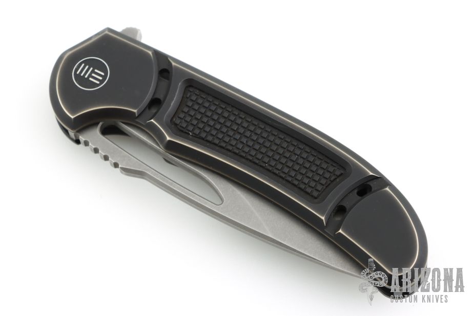 The WE Knife Co. Minax, made in league with Ferrum Forge Knife Works, is a bold knife with premium materials and amazing design. The handle scales are milled and textured from titanium, giving them a premium feel, durable build, light weight, and great ergonomics. The blade is made from CPM-20CV stainless steel, known for its incredible edge retention and performance.