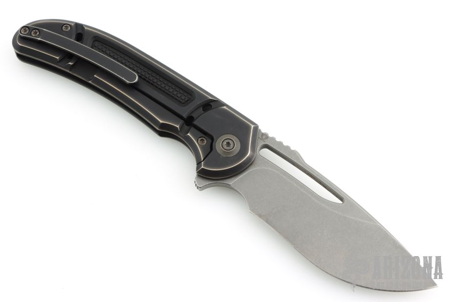 This Minax model has a bronze titanium handle and a stonewashed blade.